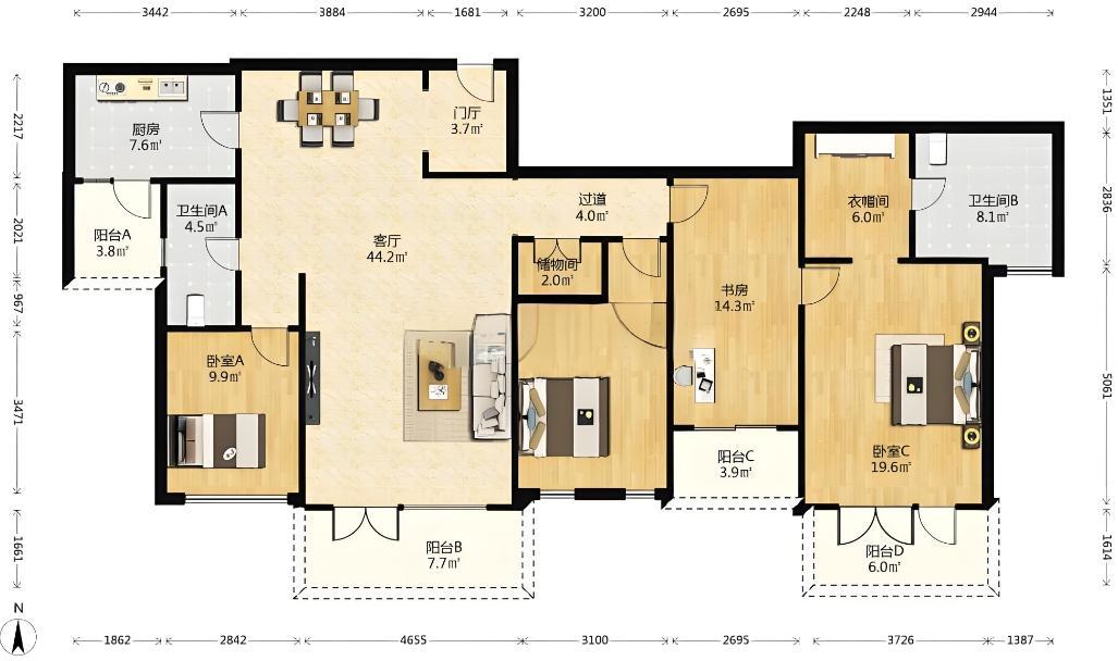 证载面积:201.47㎡,22层/24层,4室2厅2卫,精装,满五,南向。