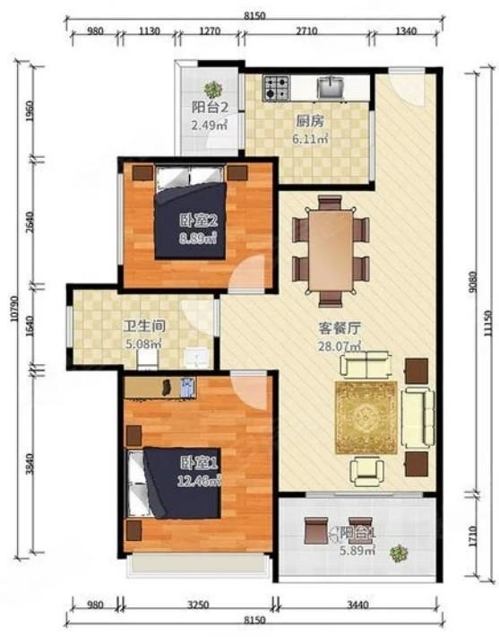 证载面积:87.07㎡,5层/47层,2室2厅1卫,建成于2016年,满五,精装,东南向。